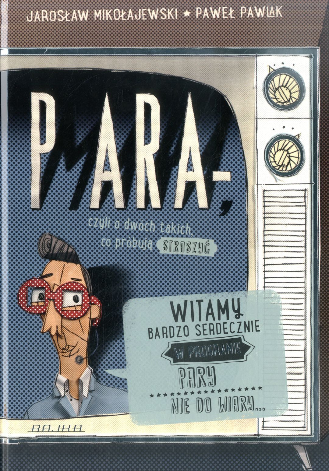 Witamy bardzo serdecznie w programie PARY NIE DO WIARY! Program jest telewizyjny, ale jedną z jego niespodzianek jest to, że ogląda się go w książce. Śmieszne, prawda? Jednak jeszcze śmieszniejsza jest para gości zaproszonych do studia: Pan Cienias i Pan Kanaletto są strachami każdego domu na świecie Także Twojego, drogi widzu-czytelniku! W jaki sposób, po co i dlaczego straszą, to już sam obejrzyj! Program ma charakter familijny i edukacyjny (bo od każdego gościa można się czegoś nauczyć). Został zrealizowany przez Pawła Pawlaka (scenografia i reżyseria) według scenariusza Jarosława Mikołajewskiego i wyprodukowany przez wydawnictwo Bajka.