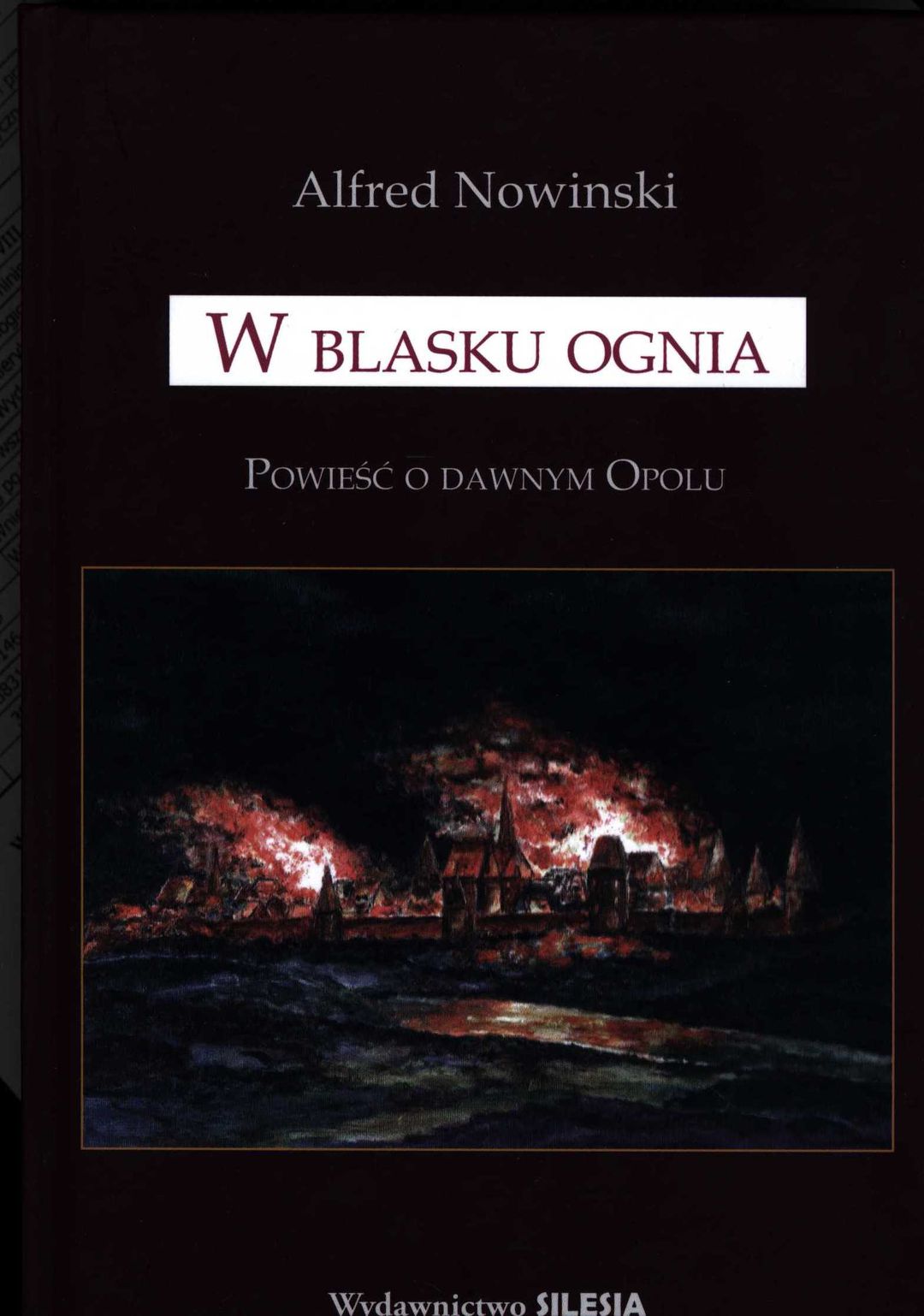 Oto Opole w latach 1837-1843, w czasach pruskich, od niedawna stolica rejencji. Co jakiś czas wybuchały w nim pożary. Najpierw uznawano je za przypadkowe, rychło jednak okazały się dziełem podpalacza, którego nie tak łatwo było wytropić Taki jest główny wątek powieści W blasku ognia (Im Feuerschein) Alfreda Nowińskiego (1881-1933), który z zacięciem rasowego autora kryminałów przetworzył literacko wydobytą z archiwów historię o serii podpaleń i ich nieoczekiwanym sprawcy. Ale ten rodowity opolanin odmalował też, w kilku innych jeszcze wątkach swej powieści, w scenkach rodzajowych, portretach mieszkańców czy opisach miejsc akcji, obraz codzienności rodzinnego miasta. Nie krył przy tym sympatii ani do tego miasta, choć - czego nie ukrywa -„Miasto było wtedy jeszcze małe, pola znajdowały się niedaleko śródmieścia, tuż za domami", ani, o dziwo, do innego miasta - historią naznaczonego Krakowa, ani, co chyba najbardziej oczywiste, do swego hajmatu - Śląska, który jeden z jego bohaterów tak postrzega:„[...] Śląsk jest piękny, znacznie piękniejszy niż wielu Ślązaków to sobie wyobraża".